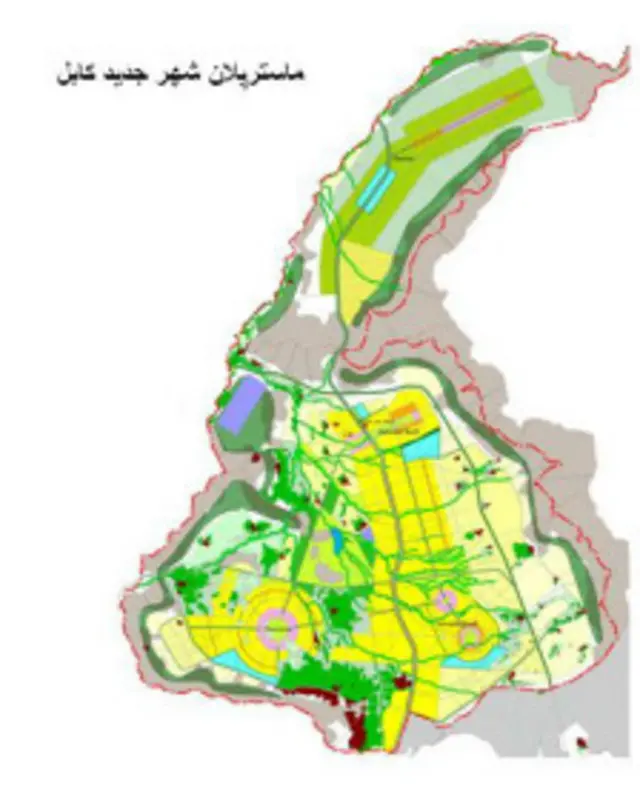 نقشه شهر کابل نو، در مساحت حدود ۷۵۰ کیلو متر مربع زمین در نظر گرفته شده که حدود دو سال پیش از سوی مهندسان جاپانی/ژاپنی تهیه شد.