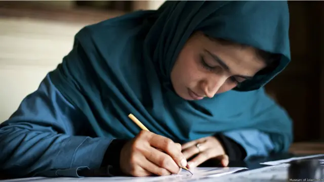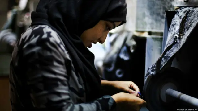 توضیح تصویر، این نمایشگاه تلاش مشترکی است از سوی موزه هنر اسلامی دوحه، موسسه فیروزکوه در کابل و موزه لیتون هاوس در لندن برای معرفی صنایع دستی افغانستان در چهار بخش حکاکی، سرامیک، خطاطی و تزیین زیورات.