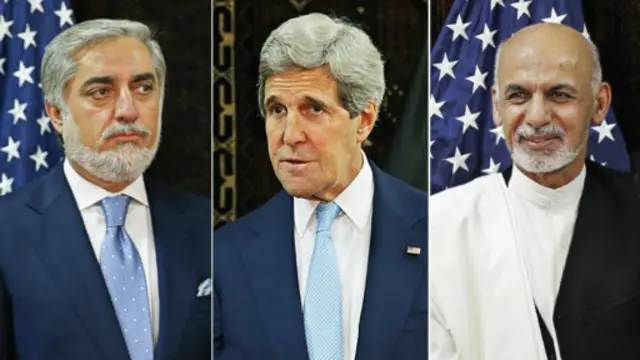 آقای کری در مذاکرات دیروزش با یان کوبیش، فرستاده ویژه سازمان ملل در افغانستان، حامد کرزی، رئیس جمهوری افغانستان و اشرف غنی احمدزی و عبدالله عبدالله، نامزدهای انتخابات افغانستان دیدار کرد.