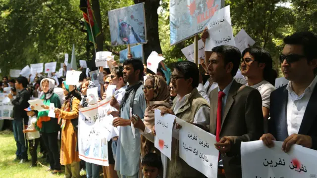 توضیح تصویر، از حکومت افغانستان خواستند که دست از پشتیبانی مخالفان مسلح بکشند و زمینه به دادگاه کشاندان عاملان کشتار غیرنظامیان را فراهم کنند.