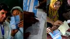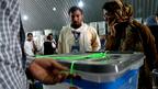 کارمند کمیسیون انتخابات به ناظران و نمایندگان دو نامزد فورمه معلوماتی یکی از محلات رای را نشان میدهد که با برگه معلوماتی پشت صندوق همخوانی ندارد.