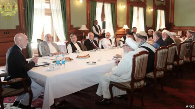این نشست قبل از ظهر امروز به وقت محلی در کاخ ریاست جمهوری بود و در آن حامد کرزی رئیس قوه اجرائیه، روسای دو مجلس پارلمان و رئیس دستگاه قضایی کشور با عبدالله عبدالله و اشرفغنی احمدزی و چهرههای سرشناس جهادی دور یک میز نشستند.