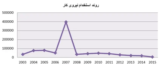 تعداد مشخص افرادی که توسط کاهش فعالیت خارجی ها بیکار شده اند معلوم نیست، اما روند کاهش استخدام، به خصوص در دو سال اخیر را میتوان در تصویر زیر مشاهده کرد: