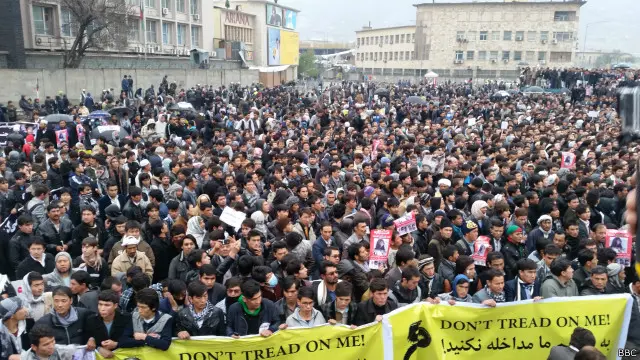 هارون نجفیزاده، خبرنگار بیبیسی که به محل رفته است، میگوید در میان تظاهرکنندگان رهبران سنتی قوم هزاره که در حکومت وحدت ملی سهم دارند، دیده نمیشوند و بیشتر تظاهرکنندگان از جوانان یا به اصطلاح نسل سوم مردم هزاره و شمار زیادی از شهروندان از اقوام تاجیک، پشتون و ازبک هستند.
