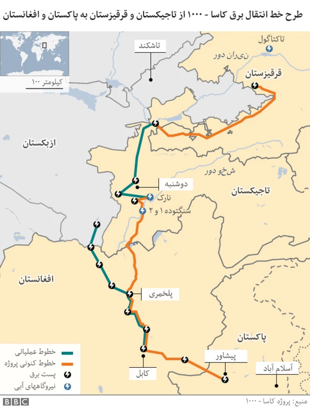 طرح “کاسا ۱۰۰۰” برق قرقیزستان و تاجیکستان را از طریق خطوط انتقال انرژی با طول ۱۲۵۰ کیلومتر به افغانستان و بعد به پاکستان منتقل میکند. در چارچوب این طرح دهها کیلومتر خطوط جدید برق در این کشورها ساخته خواهد شد.