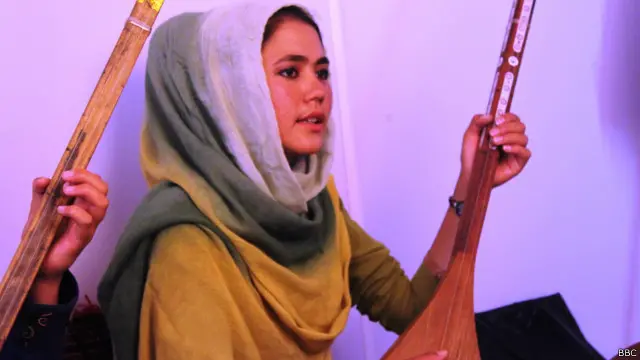 نسیمه امید هژده سال دارد. او سه ماه پیش خانواده اش را قانع ساخت تا در این کلاس موسیقی شرکت کند.
