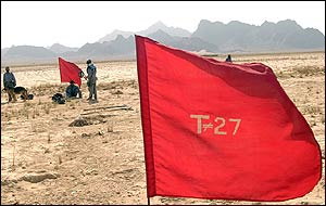 سنگهای سرخ نشان دهنده مناطقی است که خطر مين در آنها وجود دارد