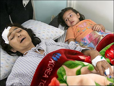يک تن از مجروحان انفجار کابل به همراه دختر خردسالش، در بيمارستان وزير اکبر خان کابل