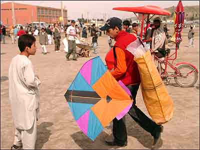 کاغذ پران بازی يا بادبادک بازی يکی از سرگرمی های سنتی مردم در افغانستان است. همه ساله به ويژه در نوروز و با آمدن بهار کاغذ پران های رنگی زيادی در شهر های مختلف افغانستان به فروش می رسد. عکسهای زير از مسابقات کاغذ پران بازی در استاديوم ورزشی غازی در کابل گرفته شده است.
