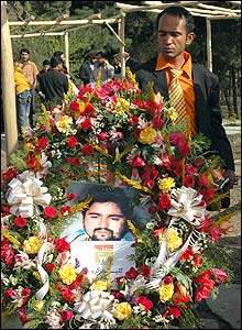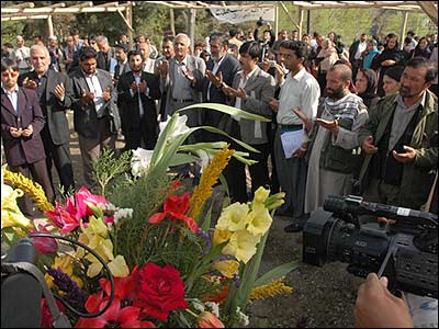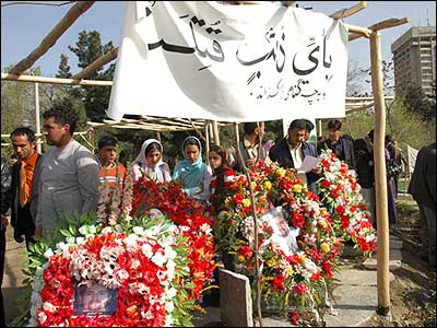 جنازه اجمل نقشبندی خبرنگار افغان، روز چهارشنبه در میان جمعی از اعضای خانواده، دوستانش و اهالی مطبوعات افغانستان در کابل به خاک سپرده شد. آقای نقشبندی یکشنبه گذشته به دست افراد گروه طالبان سربریده شد و جسدش ظهر امروز با هلی کوپتر به کابل منتقل شد. اجمل نقشبندی، ماه گذشته به همراه یک خبرنگار ایتالیایی، در ولایت هلمند توسط طالبان به گروگان گرفته شد. دولت افغانستان در ازای آزادی خبرنگار ایتالیایی، پنج تن از اعضای بلند پایه طالبان، از جمله لطیف الله حکیمی سخنگوی ارشد این گروه را رها کرد اما برای آزادی آقای نقشبندی، حاضر به معامله با طالبان نشد. بستگان آقای نقشبندی و همکاران وی در رسانه های افغانستان، روز سه شنبه، یک روز پیش از مراسم خاکسپاری او، با افروختن شمع و اهدای گل، برای او سوگواری کردند.