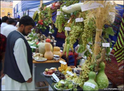 درغرفه های محصولات زراعتی، تخم های بذری اصلاح شده، میوه، گیاهان دارویی، وسایل سنتی و مدرن کشاورزی به نمایش درآمده بود
