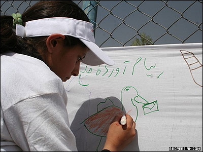 این کودکان که بیشتر لباسهای سفید به تن داشتند، نفرت از جنگ، جنگ افزارها، ویرانی و فقر را با نقاشی به روی نوار سفید نقاشی کردند. آنان همچنین نیازمندی به صلح و آرامش را با نقاشیهای کودکانه خود در برابر دوربینهای خبرنگاران به تصویر کشیدند.