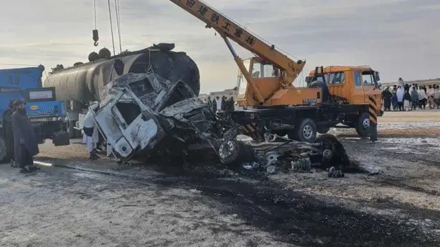 رسانههای محلی در افغانستان گزارش داده است که پس از برخورد تانکر، موتورسیکلت و اتوبوس از نوع ۵۸۰، اتوبوس «آتش گرفته است».