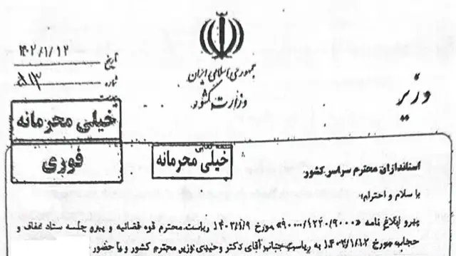 دو بخش از سندی که تاریخ خرداد ۱۴۰۲ را دارد، پیشتر در روزنامههای اعتماد و توسعهایرانی، تحت عنوان «بخشنامه وزیر کشور» منتشر شده بودند.