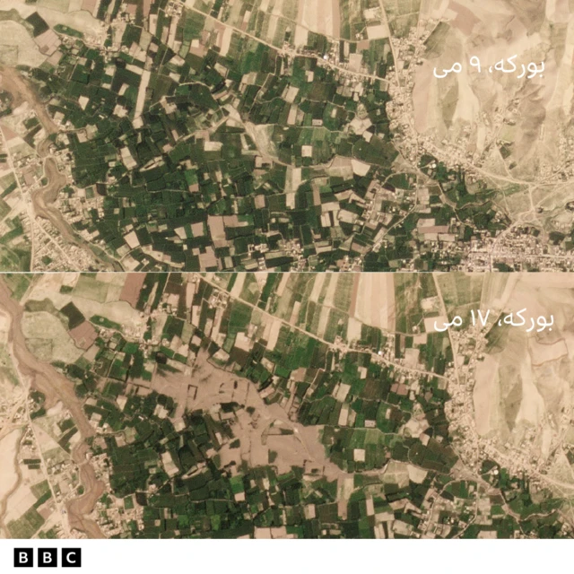 تصاویر ماهوارهای از مناطق سیلزده در بغلان در شمال افغانستان نشان میدهند که در مسیر سیل همهچیز زیر گل و لای سیلاب رفتهاند.