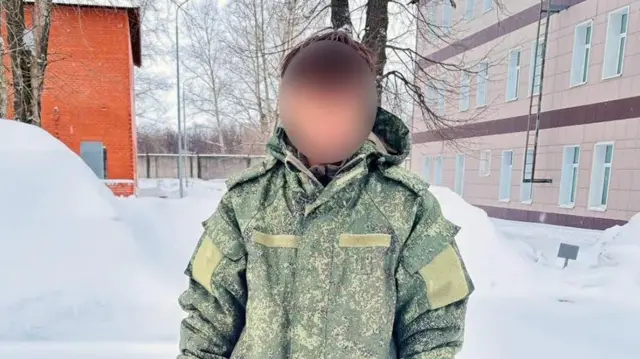 مردی از اوتارپرادش اونیفورم رزمی ارتش روسیه را برتن دارد در یک پیام ویدیویی گفته است که از طریق یک رسانه اجتماعی در ارتش روسیه استخدام شده است.