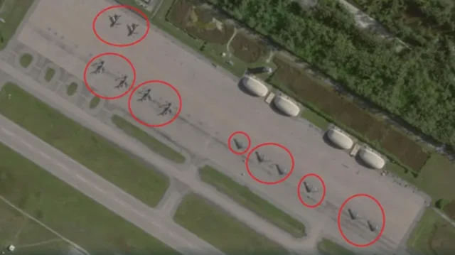 تصاویر ماهوارهای همچنین از حضور شش فروند بمبافکن بی-۵۲ در این پایگاه خبر میدهند.