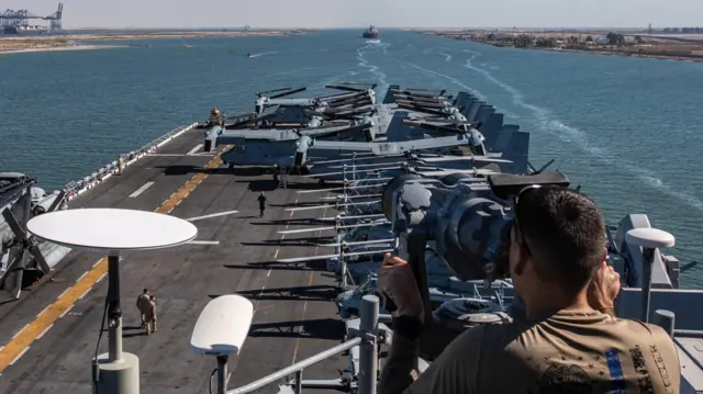 ناوگان پنجم نیروی دریایی آمریکا مستقر در بحرین در بیانیه ای اعلام کرده است که ملوانان و تفنگداران دریایی آمریکا پس از عبور از کانال سوئز در یک استقرار از پیش اعلام شده وارد دریای سرخ شدند.