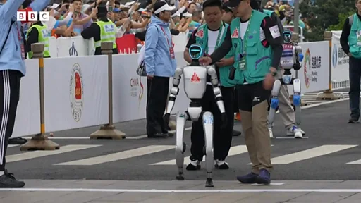 در پکن ۲۱ ربات انساننما در کنار هزاران دونده در مسابقه نیمه ماراتن روز شنبه (۳۰ فروردین) شرکت کردند.