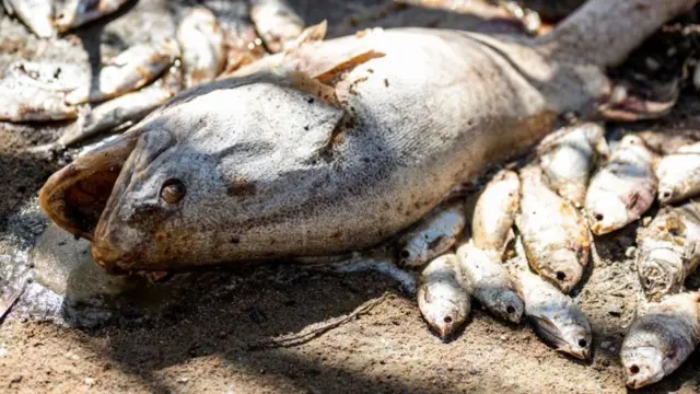 گمان میرود این ماهیها در اثر پایین بودن سطح اکسیژن در رودخانه پس از موج گرمای اخیر، تلف شده باشند.