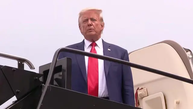 آقای ترامپ بعد از پرواز به واشنگتن با هواپیمای خصوصی خود موسوم به «ترامپ فورس وان» با کاروانی بزرگ در کنار ماموران پلیس مخفی به دادگاه رفت.