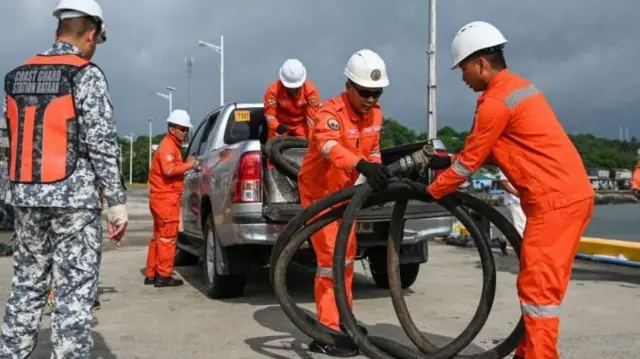 گارد ساحلی فیلیپین برای مهار نشت نفت و جلوگیری از رسیدن آن به مانیل، پایتخت به موانع شناور و شیلنگهای مکش متوسل شده است.