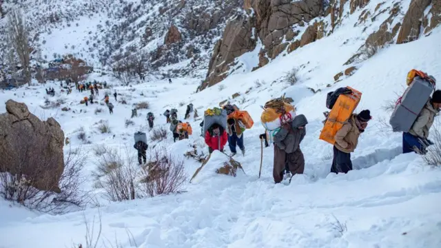 کولبران مسیرهای سخت و طولانی کوهستانی را با بارهایی که بر دوش دارند طی میکنند و با خطرهای مرگباری مانند پرت شدن از پرتگاه، یخ زدن در سرما و روی مین رفتن مواجه هستند.