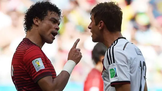 پرتغال دو بر صفر از تیمی که بعدا قهرمان تورنمنت شد،عقب بود و پپه به توماس مولر نزدیک شد و مهاجم باشگاه بایرن مونیخ خودش را زمین انداخت.