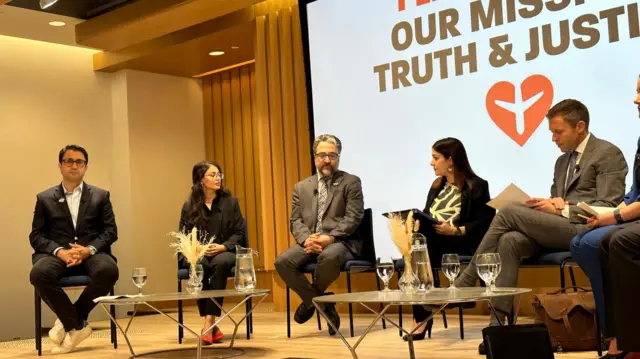 خشایار جنیدی خبرنگار بیبیسی که در این کنفرانس خبری حاضر بود، میگوید اعضای خانواده قربانیان هواپیمای اوکراینی با شنیدن خبر ارجاع این پرونده به دیوان بینالمللی لاهه اشک ریختند، یکدیگر را در آغوش کشیدند و به هم تبریک گفتند.