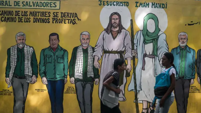 دیوارنگارههایی (گرافیتی) در کاراکاس، پایتخت ونزوئلا نقش شدهاند که هوگو چاوز، رئیسجمهور درگذشته این کشور را در کنار قاسم سلیمانی و چند چهره نظامی و شبهنظامی کشته شده را با عنوان «شهید» در کنار عیسی مسیح و امام مهدی نشان میدهد، دو شخصیتی که در مسیحیت و اسلام عنوان «منجی موعود» دارند.