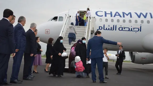 شامگاه ۲۵ آوریل در مراسم استقبال از این زنان و کودکان در فرودگاه شهر دوشنبه، مقامات تاجیکستان حضور داشتند.
