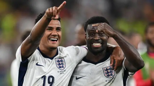 این بار ساکا، بازیکن پست بال و باشگاه آرسنال، منجی انگلیس شد و با برشی زیبا از سمت راست و شوت پای چپ خود به گوشه پایین دروازه، بازی را به وقت اضافه کشاند.