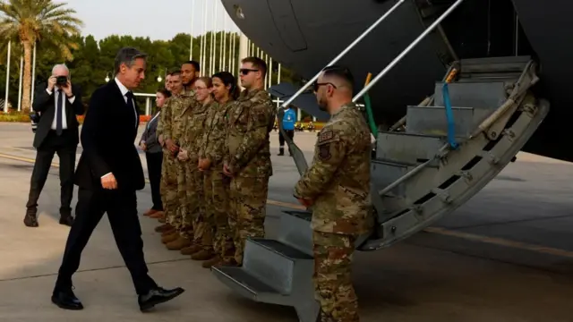 آقای بلینکن پیش از سفر به قاهره شب گذشته برای دیدار با رهبران سعودی وارد جده شد و در کاخ سلطنتی با محمد بن سلمان، ولیعهد عربستان سعودی، دیدار کرد.