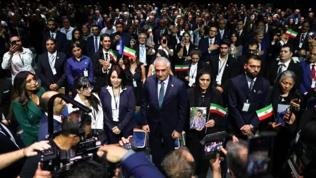 شماری از هواداران شاهزاده رضا پهلوی و فعالان سیاسی دیگر در این همایش حضور داشتند.