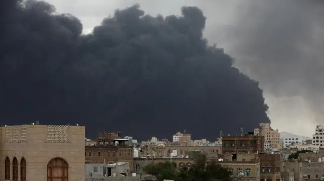 تلویزیون المسیره حوثیها ابتدا از چهار حمله هوایی اسرائیل به پایتخت خبر داد.