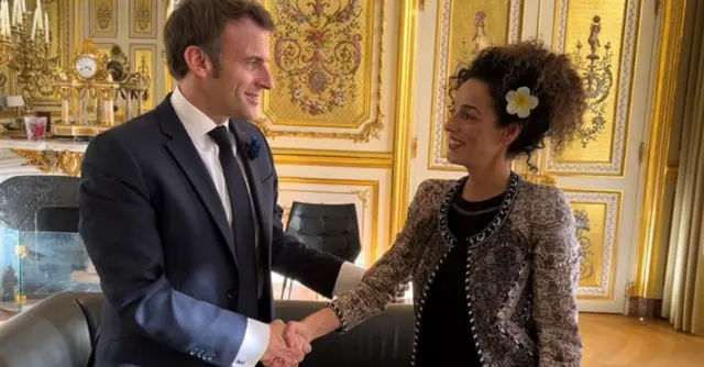 امانوئل مکرون، رئیسجمهوری فرانسه، روز جمعه، ۲۰ آبان، در کاخ الیزه با مسیح علی نژاد و لادن برومند، فعالان زن ایرانی، دیدار داشت.