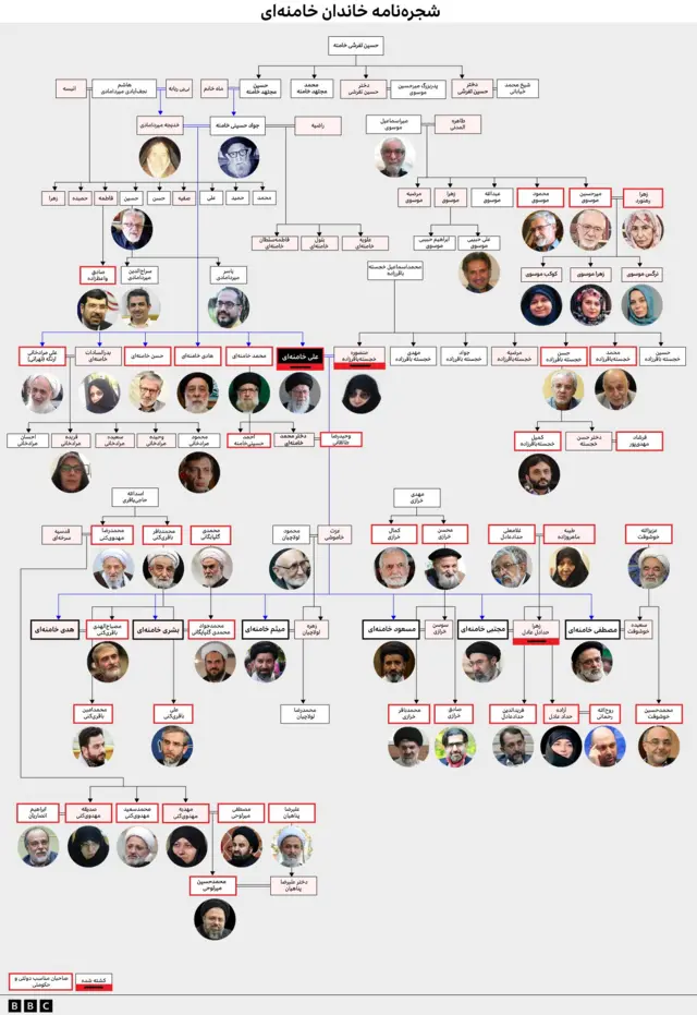 انتشار خبر کشته شدن بعضی از اعضای خانواده علی خامنهای، رهبر سابق جمهوری اسلامی ایران، این سوال را ایجاد کرده که آنها چه مرتبهای در فامیل داشتند؛ علی خامنهای چند داماد و عروس دارد و از این طریق با کدام یک از خانوادههای بانفوذ در ایران خویشاوند سببی بوده است.