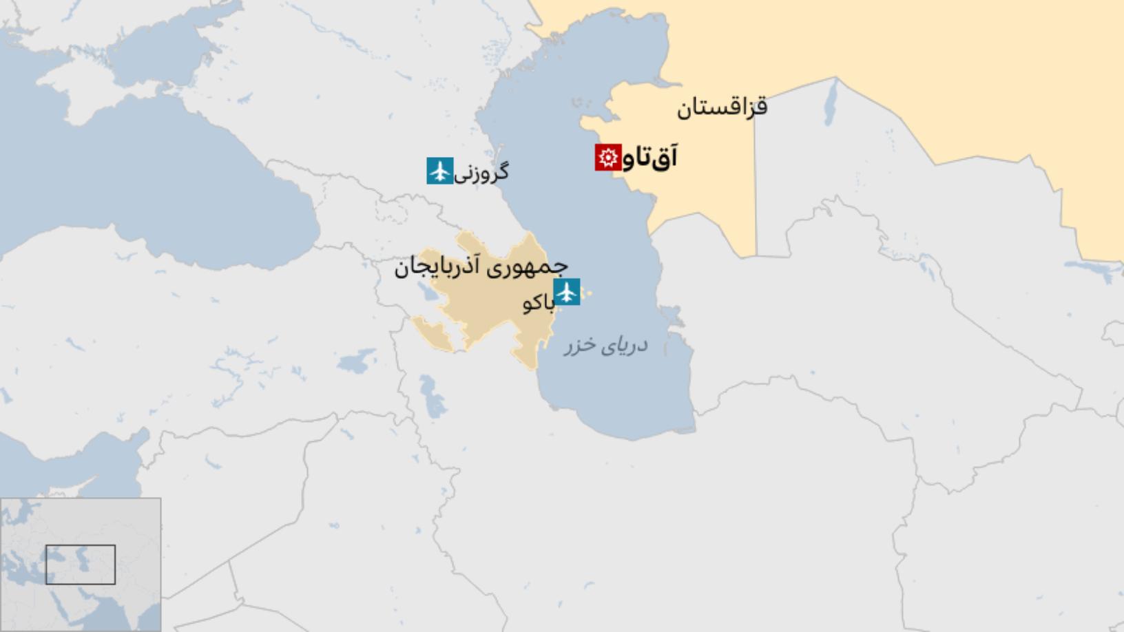هواپیمای متعلق به خطوط هوایی جمهوری آذربایجان هنگام سقوط در نزدیکی بندر آقتاو، در قزاقستان، آتش گرفت. آتشسوزی هواپیما کمی بعد مهار شد.