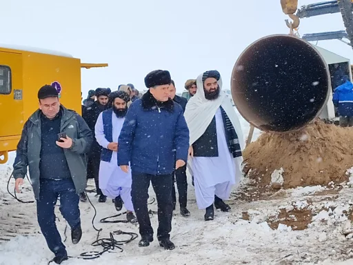 امیرخان متقی، وزیر خارجه حکومت طالبان، و رشید مردوف، وزیر خارجه ترکمنستان، از پیشرفت کار پروژه تاپی در خاک افغانستان بازدید کردهاند.