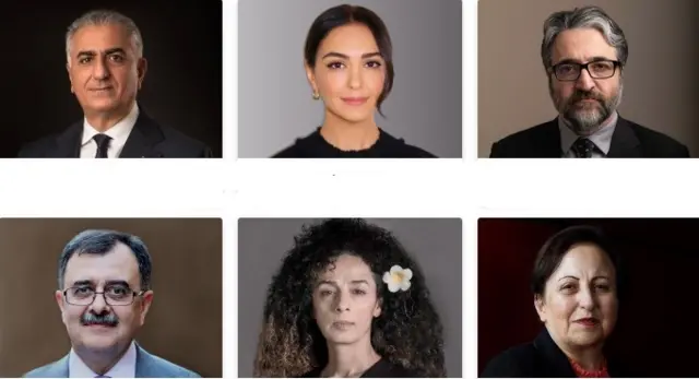 رضا پهلوی: فرزند محمدرضا شاه پهلوی و ولیعهد پیشین ایران. او در سال ۱۳۵۹ در تبعید به عنوان پادشاه ایران سوگند یاد کرد، اما بعد از آن گفته به این نتیجه رسیده که نباید بحث شکل حکومت مانع همسویی مخالفان جمهوری اسلامی شود. رضا پهلوی در سالهای اخیر بر شعارهایی چون اتحاد، دموکراسی و حقوق بشر تاکید داشته است.