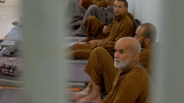 به ما اجازه داده شد تا نگاهی کوتاه به داخل دو سلول بیندازیم، اما امکان صحبت با زندانیان وجود نداشت. به آنها گفته بودند که ما خبرنگار هستیم و میتوانند در صورت تمایل چهره خود را بپوشانند. تعداد کمی این کار را انجام دادند. بیشتر زندانیان در سکوت روی پتوها و تشکهای نازک نشسته بودند. دو نفر نیز در حال قدم زدن در سلول بودند.