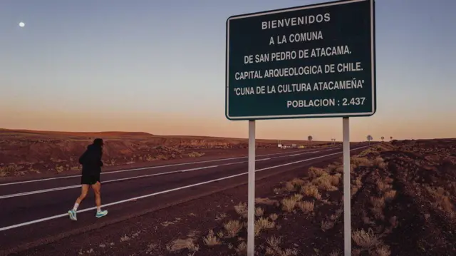 تا این که صدای یک نفر بلند میشود؛ مردی با لهجه آمریکایی-آلمانی که دوندهها را قانع کرده، آنجا بیایند. و مهمتر این که آن مکان را پای پیاده ترک کنند و بیابان آتاکاما را به موازات اتوبان اصلی طی کنند و به «خط پایان» در سن پدرو د آتاکاما، در فاصله ۵۰۰ کیلومتری خط شروع و در ارتفاع ۲۴۰۰ متری سطح دریا برسند.