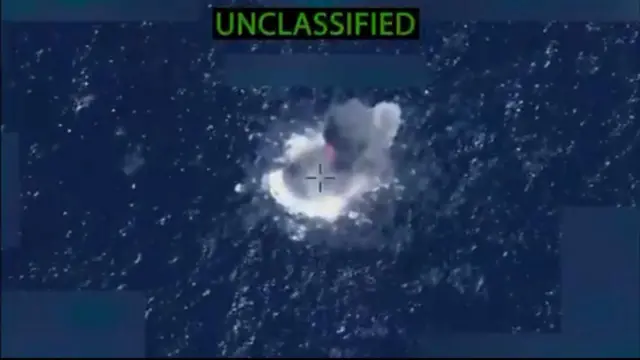 در ویدئوهایی که آقای هگست منتشر کرده، چند قایق پس از اصابت مهمات آمریکایی در حال سوختن دیده میشوند.