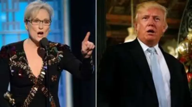 رئیس جمهور منتخب آمریکا خانم استریپ را یک "پادوی هیلاری" توصیف کرد و گفت که به سخنرانی او گوش نکرده و مراسم گلدن گلوب را هم ندیده است.