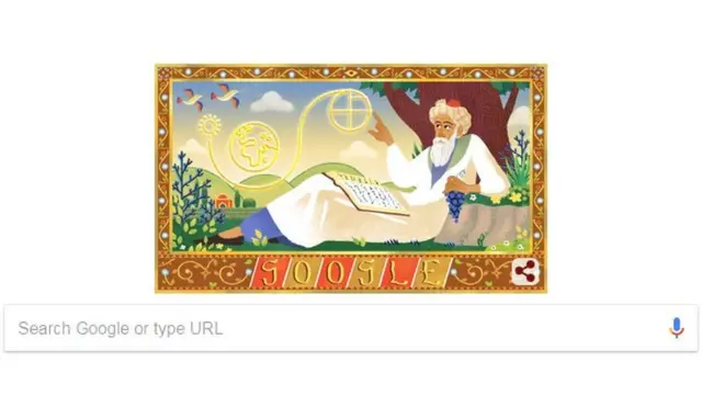 امروز نهصد و هفتاد و یکمین سالگرد تولد خیام، شاعر، فیلسوف، ریاضیدان و ستارهشناس دورهٔ سلجوقی ایران است. خیام شناخته شده ترین چهره ادبیات ایران در غرب است و گوگل به همین مناسبت امروز ۲۸ اردیبهشت لوگوی خود را تغییر داده و طرحی از خیام همراه با طرحهای هندسی و ستارهشناسی در حالیکه خوشهای انگور در دست دارد و کتابی در برابر، به آن افزوده است.