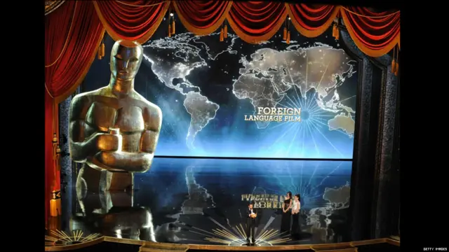 توضیح تصویر، اصغر فرهادی که جایزه اسکار بهترین فیلم غیر انگلیسی زبان را برای فیلم جدایی نادر از سیمین دریافت کرد، صحبت های خود را بعد از دریافت جایزه با "سلام به مردم خوب سرزمینم" که به زبان فارسی ادا کرد، آغاز کرد و بقیه صحبت هایش را به زبان انگلیسی ادامه داد.