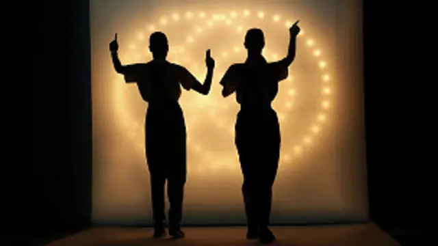در همین جا صحنه، تنها در بعد عمودی گسترده نشده و در عین حال در بعد افقی هم چشمگیر است. در جلوی صحنه زنی با چراغ قوه حرکت بی انتهای خود را از قلب صحنه تا جلوی آن به طور مکرر ادامه می دهد (رقصی که پیشتر هم در صحنه دیگری دیده بودیم) و در کنار او مردی با لباسی کاملاً پوشیده و گریمی غریب حرکات موزون مختلفی را با چراغ قوه ادامه می دهد. ویژگی رقص هر دو تکرار - و نمایش ملال زندگی- است که یکی از مهمترین درونمایه های اثر محسوب می شود.