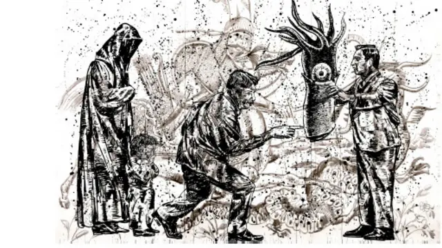 سه عنصر عوامل تاریخی، انتقاد اجتماعی و سورئالیست انتزاعی، اجزای روایت گویی نقاشی های مرا تشکیل می دهند.