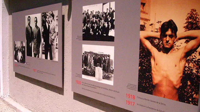 گرداگرد حیاط خانه مراحل گوناگون زندگی پرفراز و نشیب بونوئل در ویترینهایی به نمایش گذاشته شده است.