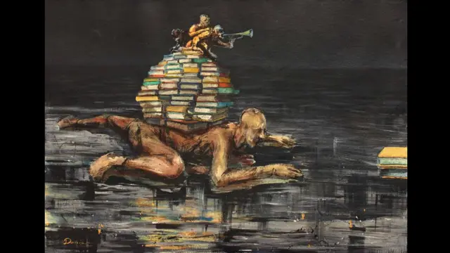 توضیح تصویر، نمایشگاهی از آثار نقاشی علیرضا درویش در شهر کلن آلمان برپا شده است که تا 21 سپتامبر ادامه دارد
